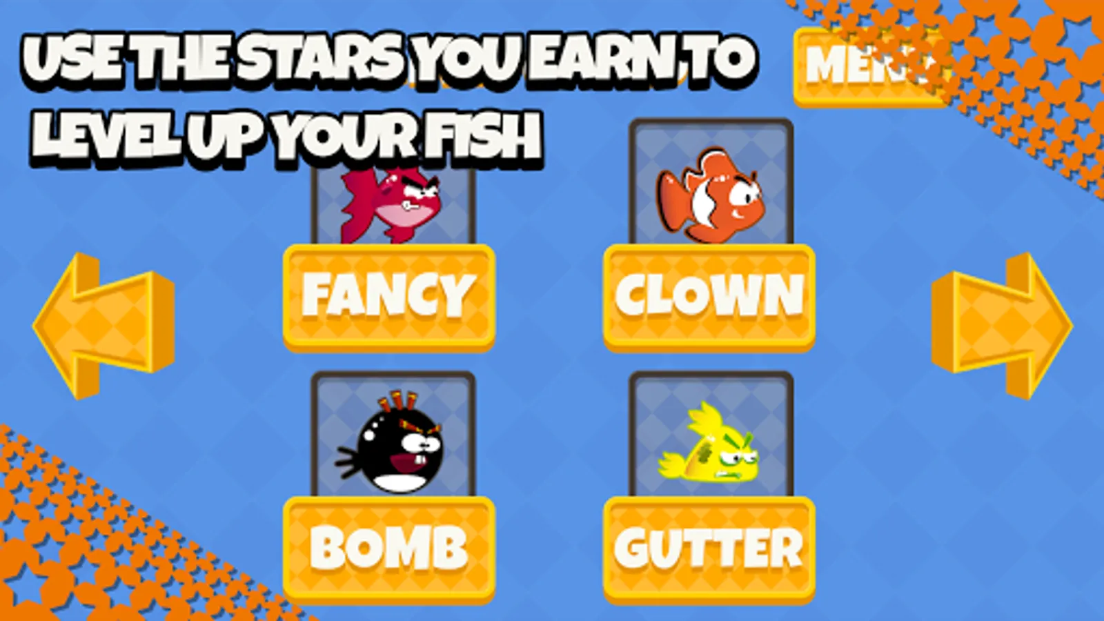 + Collect and earn stars to level up your fish.