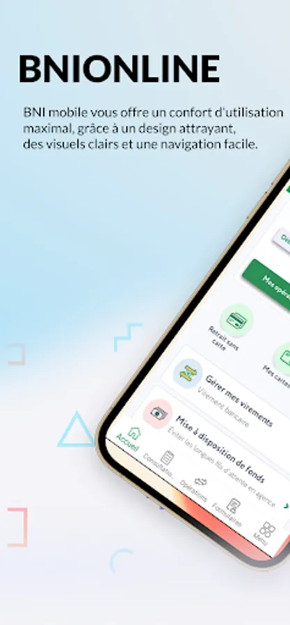 With BNI mobile, your bank accompanies you everywhere on your smartphone or tablet. The app offers you all the possibilities and functionalities necessary for your daily banking operations.