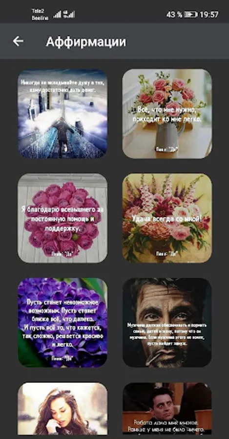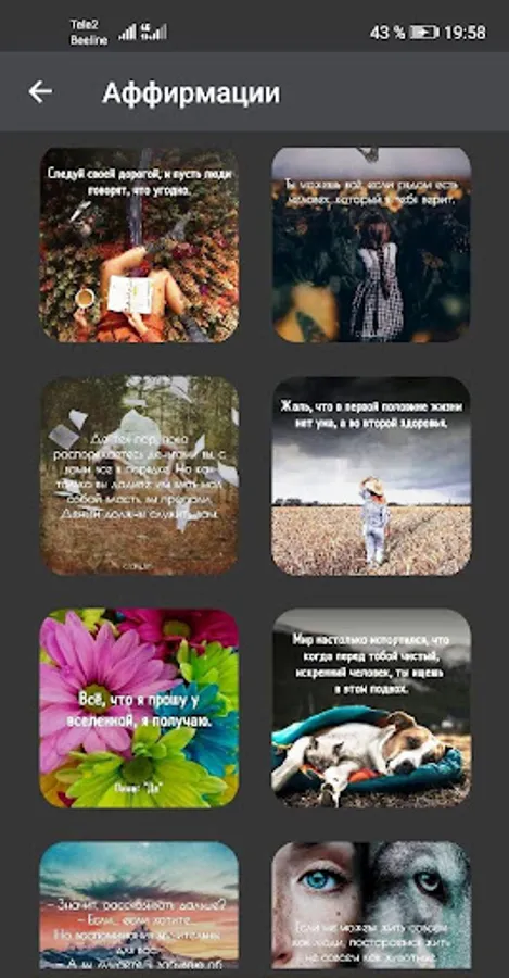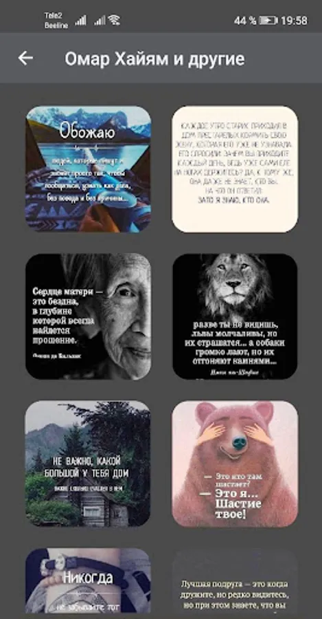 The application "Wise words and thoughts about life for every day" will help you find a solution for this situation here and now.