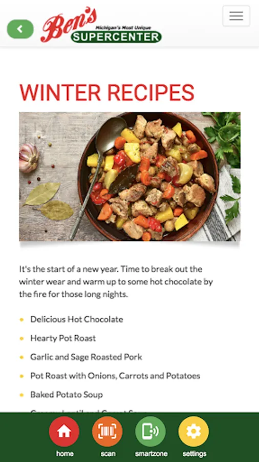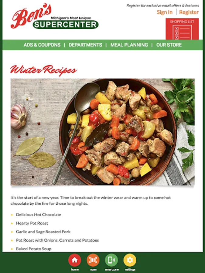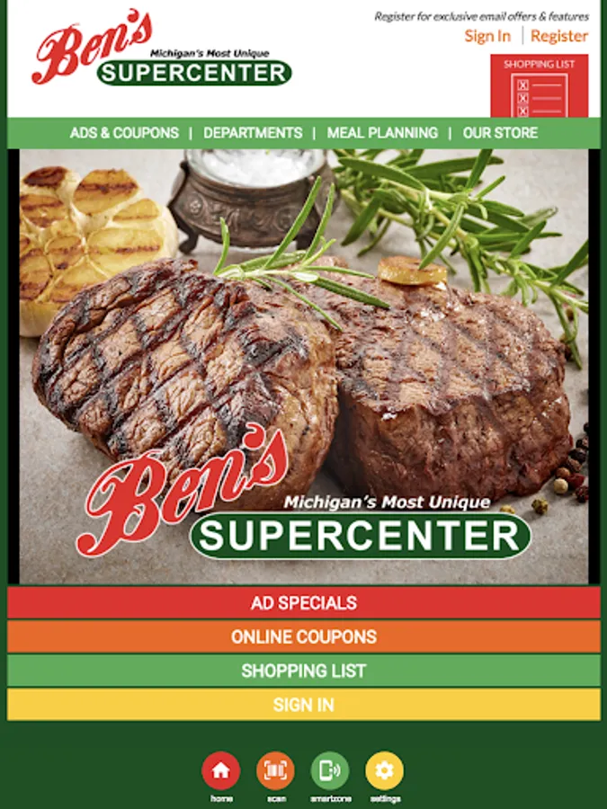 The Ben's Supercenter app enhances your grocery shopping experience. As you shop at a participating store, use this shopping companion app to help save you more money and receive special alerts. Along with being able to view store ads and coupons, the SmartZone feature allows the store to send deals and announcements to your phone. As you wind through the aisles of the store, be ready for offers to pop up on your phone.