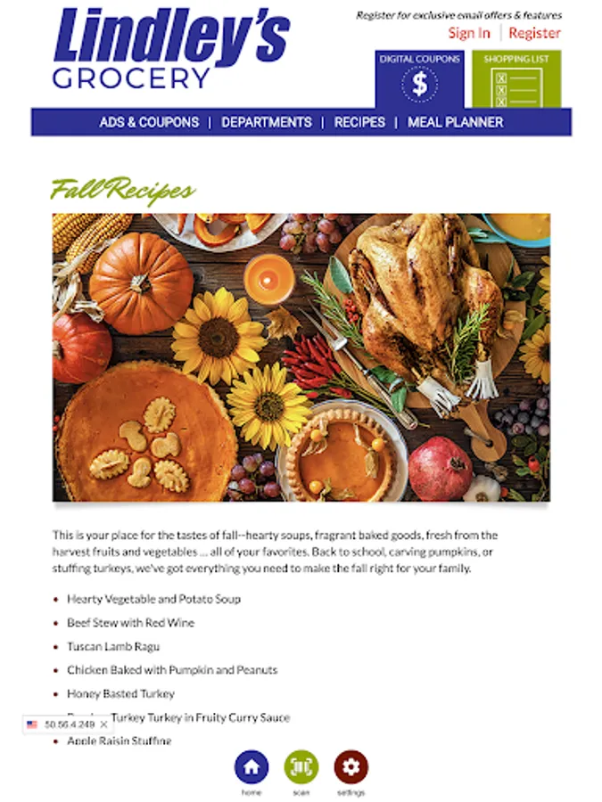 The Lindley's Grocery app enhances your grocery shopping experience. If you shop at a Bright Aisle participating grocer, use this shopping companion app to help save you more money. Along with being able to view store ads and coupons, the SmartZone feature allows the grocer to send deals and announcements to your phone. As you wind through the aisles of the store, be ready for offers to pop up on your phone.