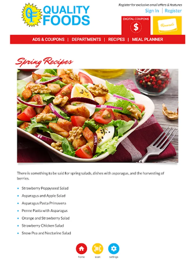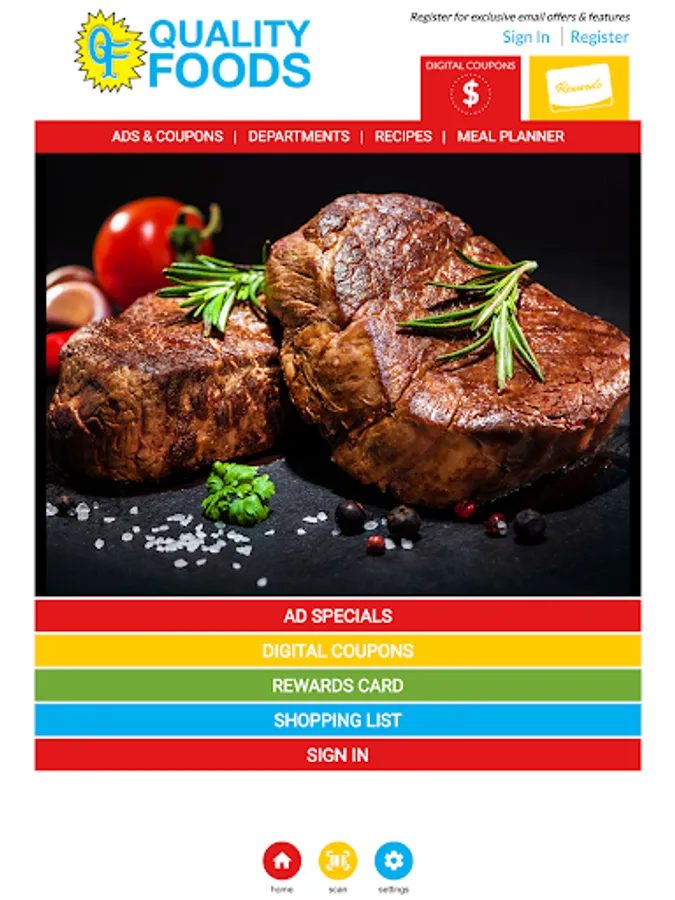 The Quality Foods app enhances your grocery shopping experience. If you shop at a Bright Aisle participating grocer, use this shopping companion app to help save you more money. Along with being able to view store ads and coupons, the SmartZone feature allows the grocer to send deals and announcements to your phone. As you wind through the aisles of the store, be ready for offers to pop up on your phone.
