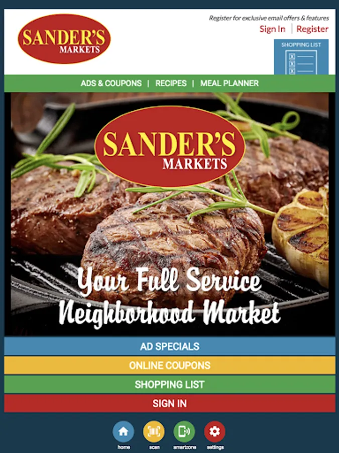 The Sanders Markets app enhances your grocery shopping experience. As you shop at a participating store, use this shopping companion app to help save you more money and receive special alerts. Along with being able to view store ads and coupons, the SmartZone feature allows the store to send deals and announcements to your phone. As you wind through the aisles of the store, be ready for offers to pop up on your phone.