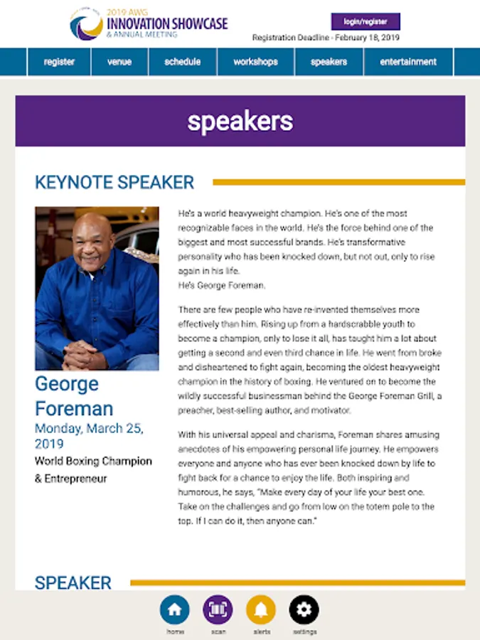 The is the official app for Associated Wholesale Grocers (AWG) shows. The app contains the following features for attendees of a show: