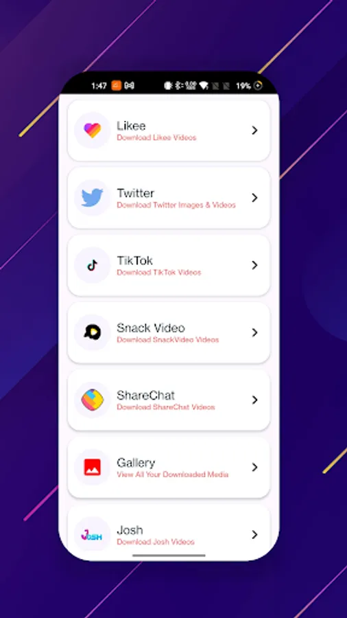 To download videos, simply copy the video URL and paste it into the corresponding social media category in the app. The Social Video Downloader will automatically detect the video link and notify you when the download is ready. The built-in gallery feature makes it easy to access all of your downloaded videos and images.