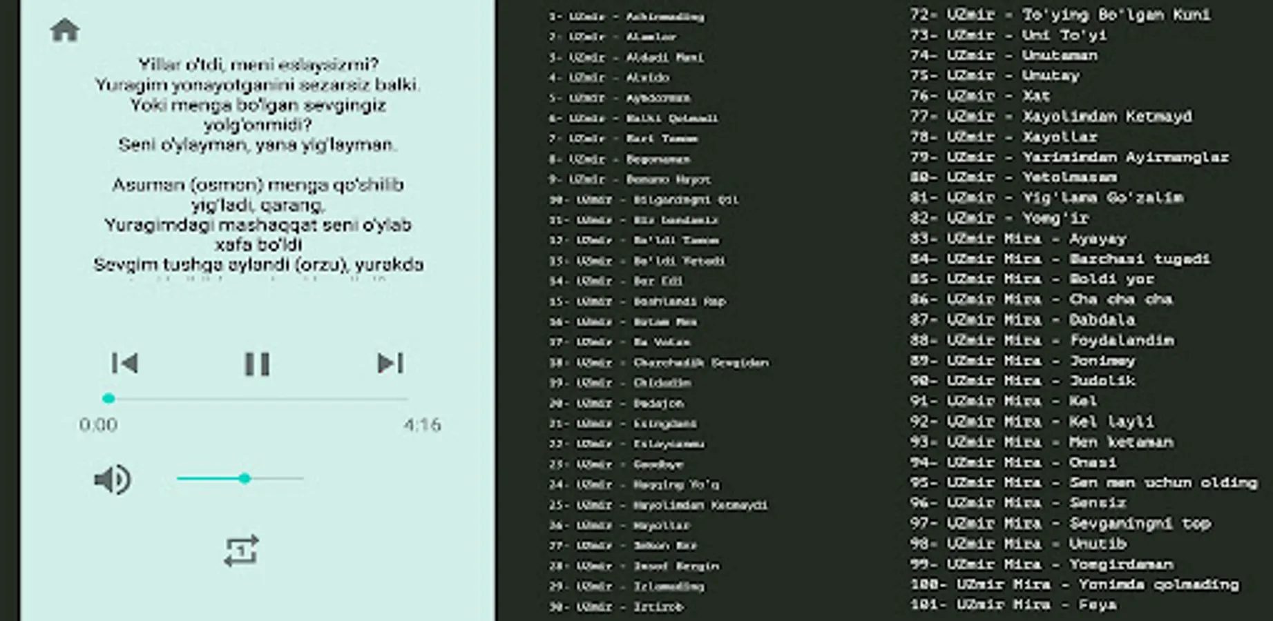 Uzmir Mira Qo'shiqlari 2023 Screenshots