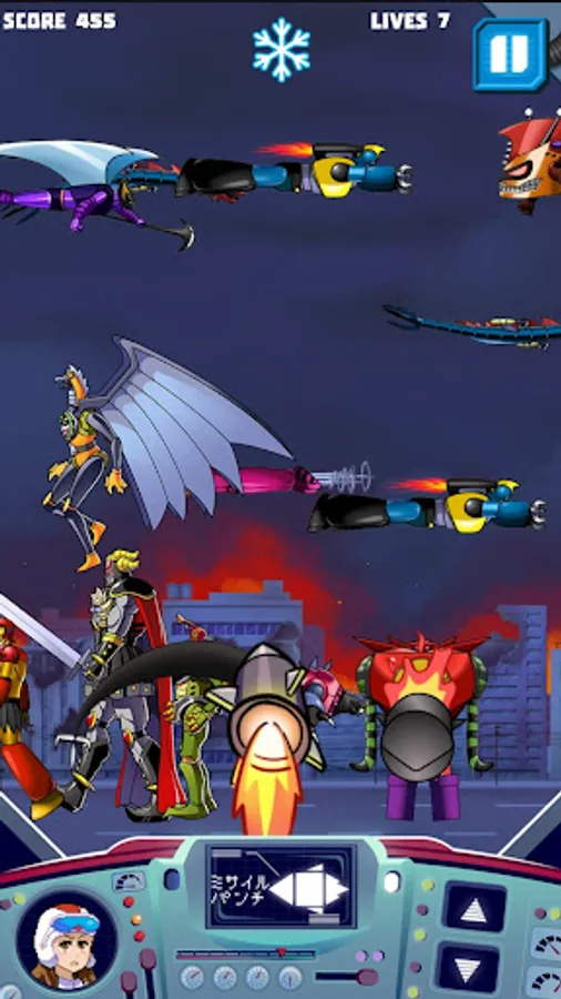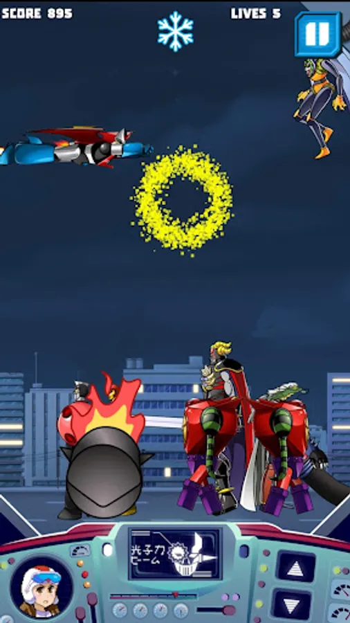 Sometimes a snowflake appears at the top of the screen, if you touch it, Mazinger Z's freezing beam is activated which freezes all land kikaijus and helps you destroy several enemies at the same time on the screen, so As soon as you see it appear, run to touch it because it lasts very little on the screen.