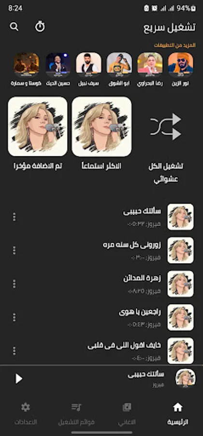 The application contains Fayrouz songs without the Internet, listen to the morning fairies without the Internet: