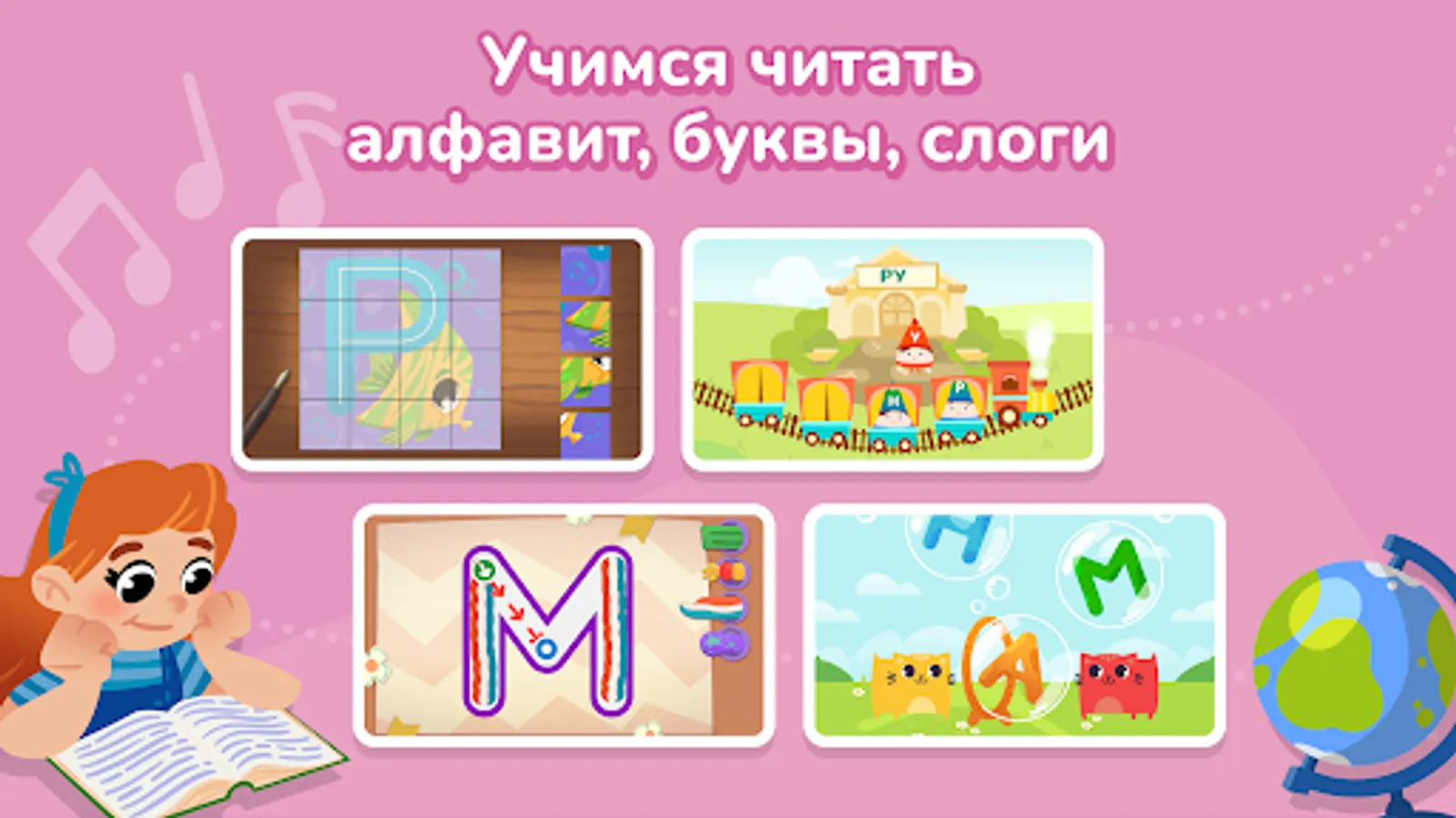 For additional development in Kubokot there are children's puzzles and educational games, interactive coloring and drawing for girls and boys, and an educational game "Learning to distinguish emotions."