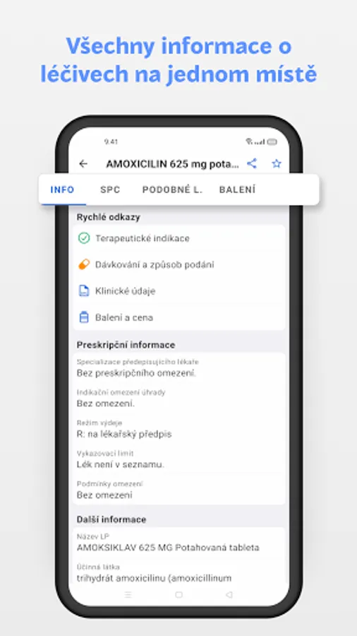 • Important information from the Summary of Product Characteristics (SPC) (indications, dosage, contraindications, interactions, side effects, overdose, etc.);