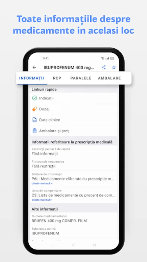 • Important information from the SmPC document of the drug (indications, dosage, contraindications, interactions, side effects, overdose, etc.);