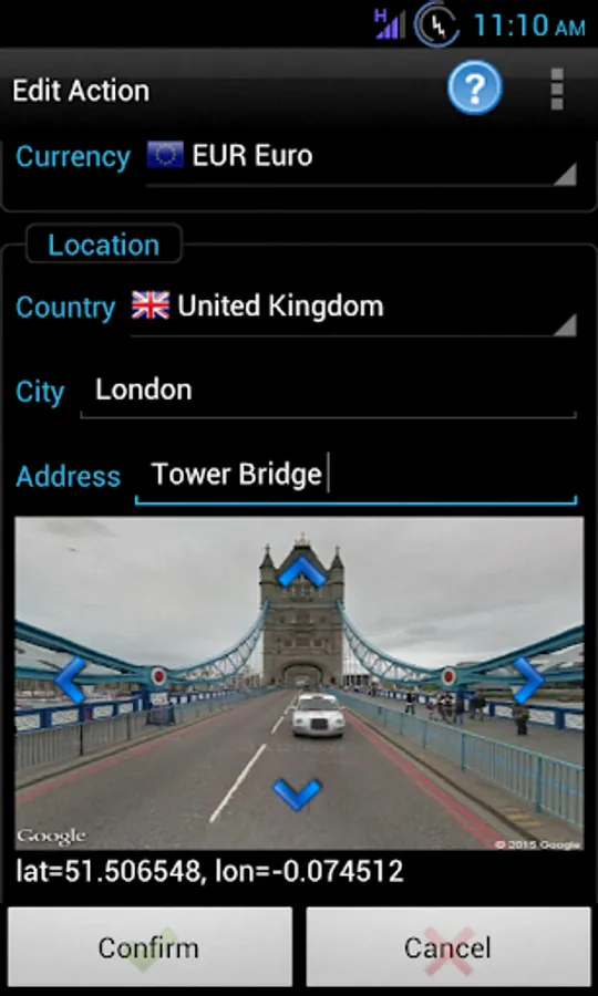 You can also press the "Map" button and locate the expense on the map, or press the "Current location" if you log the expense exactly when it happens.