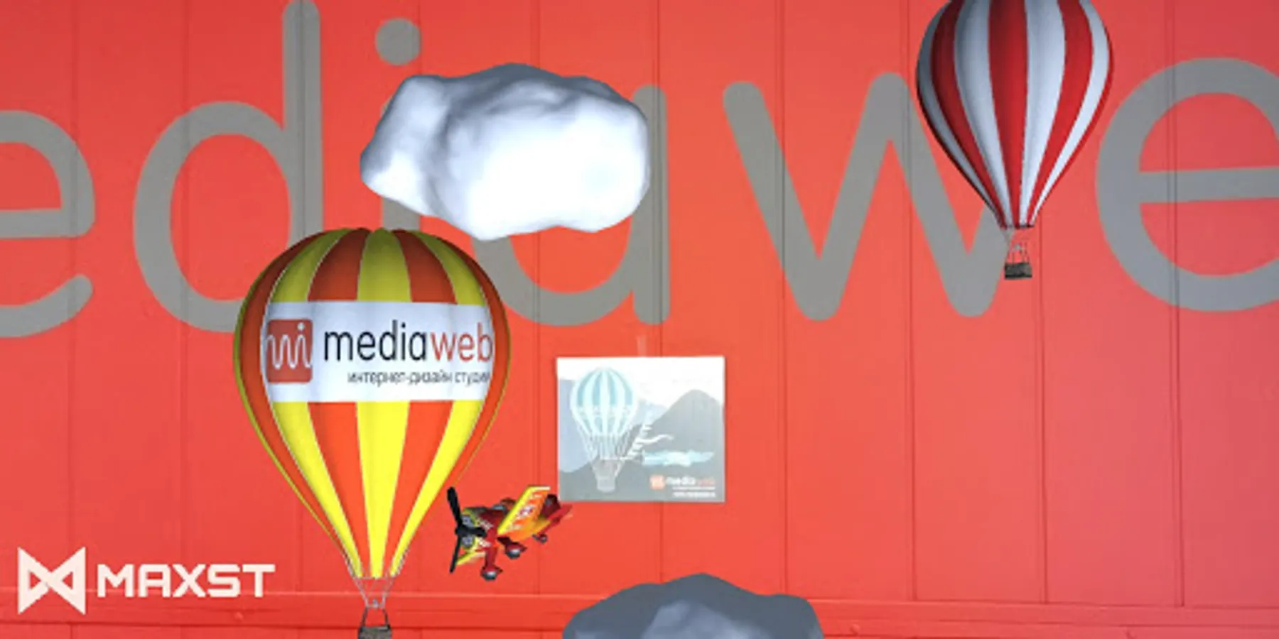 For the application to work, you need a graphic image (marker), which you can download at https://mediaweb.ru/marker_airballons.png and print.