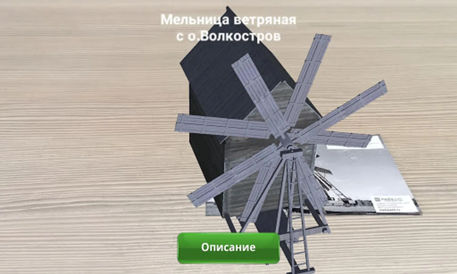 Point the camera at the printed image of the object so that it fully fits into the screen of the device. Almost immediately after that, on top of the image you will see a virtual 3D model of the monument.