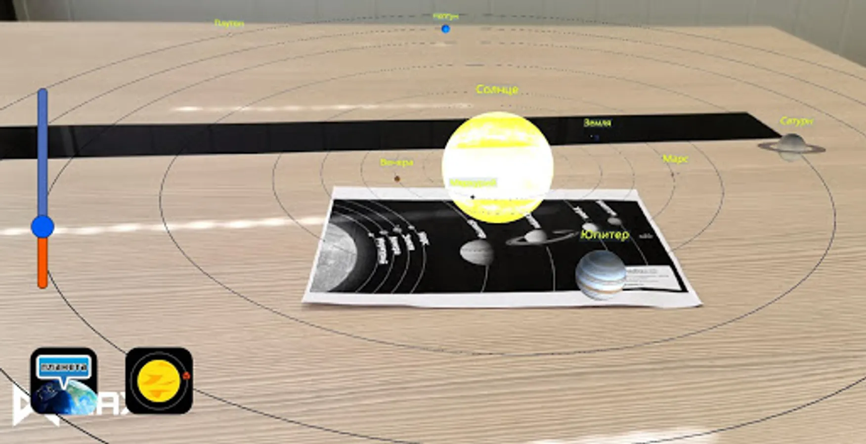For the application to work, you need an image of the Solar System, which you can download at https://mediaweb.ru/marker_solarsystem.png and print.