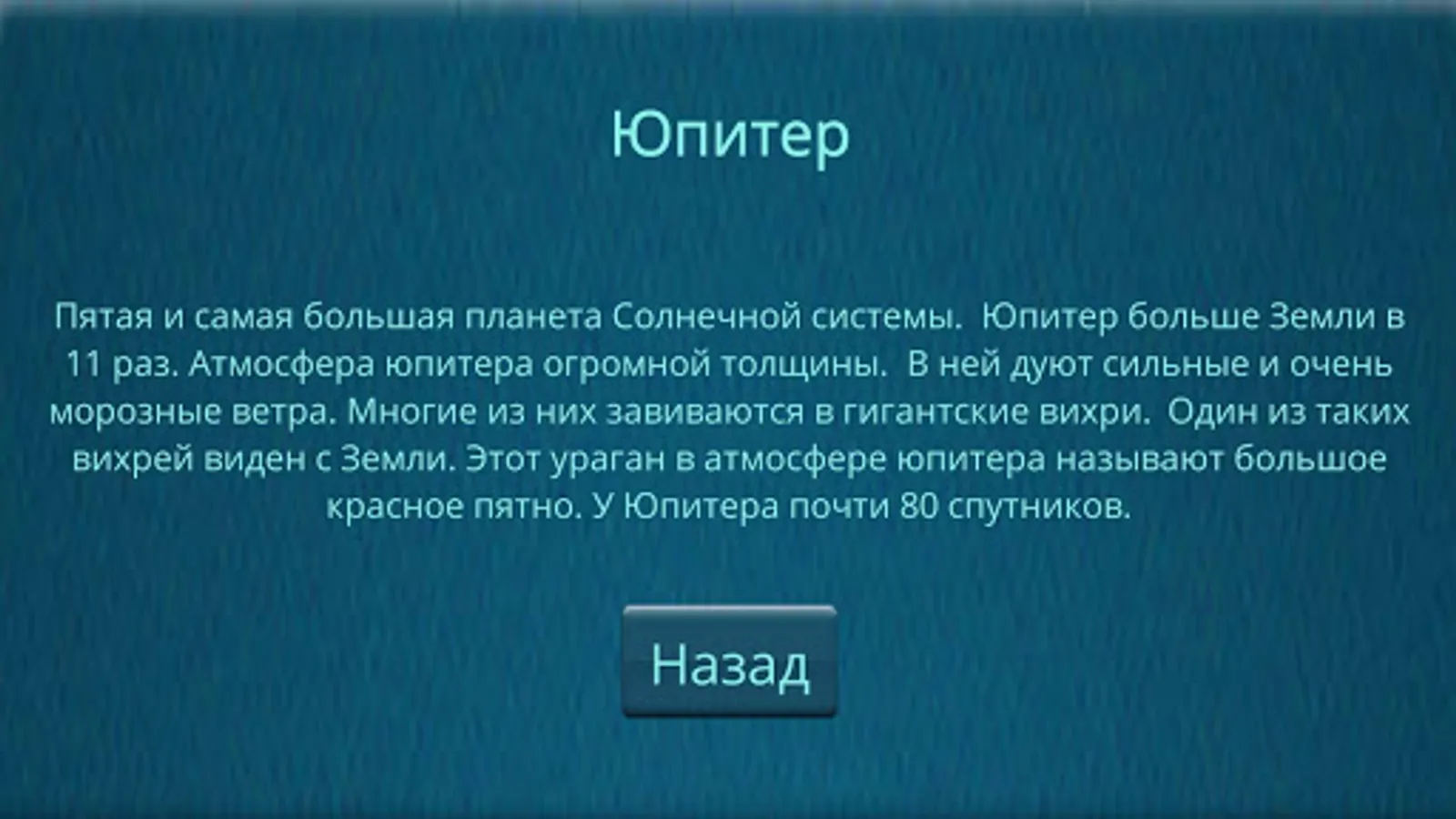 In the "Parade of planets" mode, you can get additional information by tapping on the image of the planet.