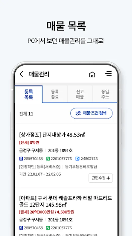 It is possible to check and edit the status of properties registered in Naver Real Estate.