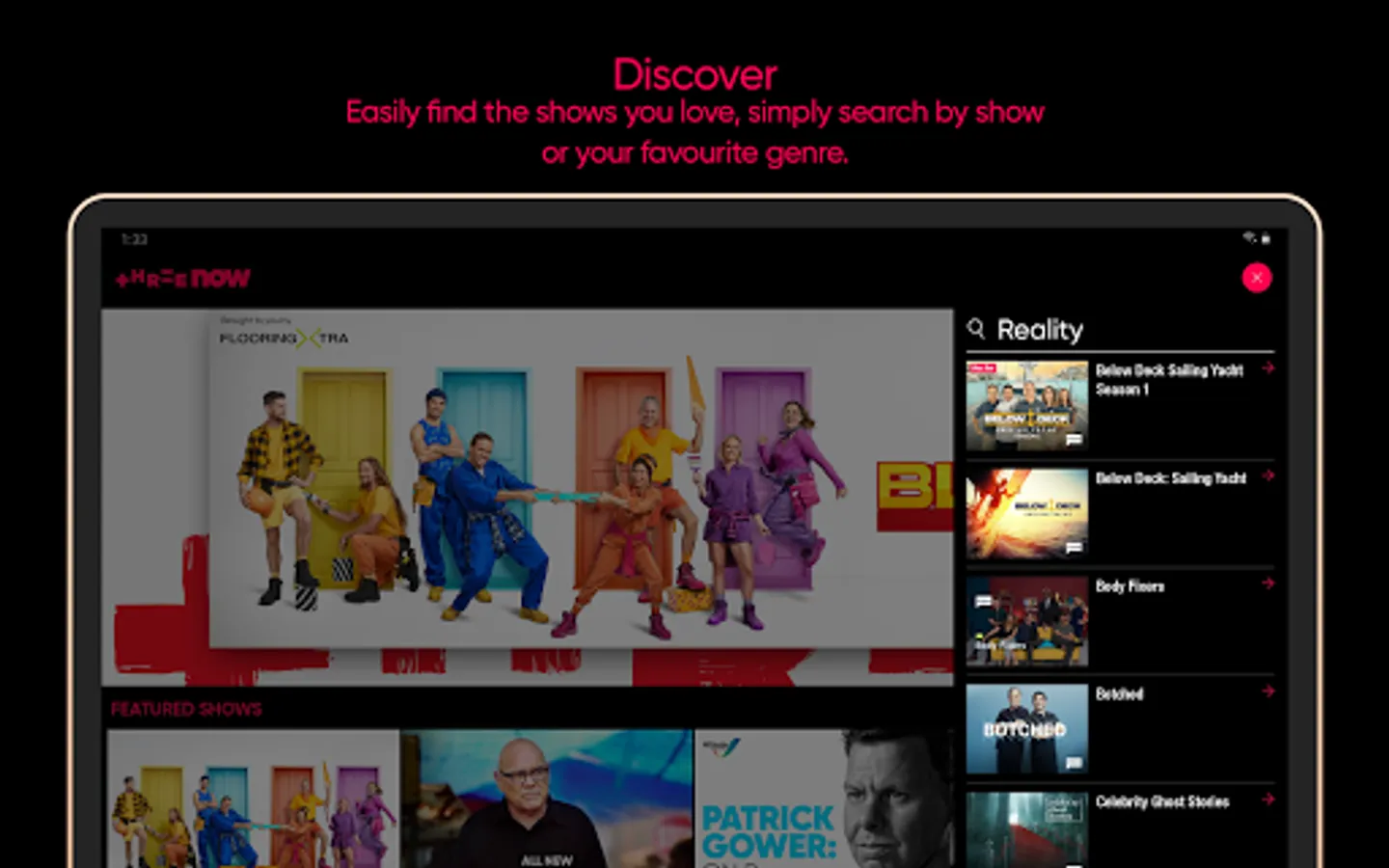 With the ThreeNow app you have access to thousands of hours of on-demand content and live TV, available to stream for free, when and where you want on your phone or tablet. Download the app and create an account to start streaming!