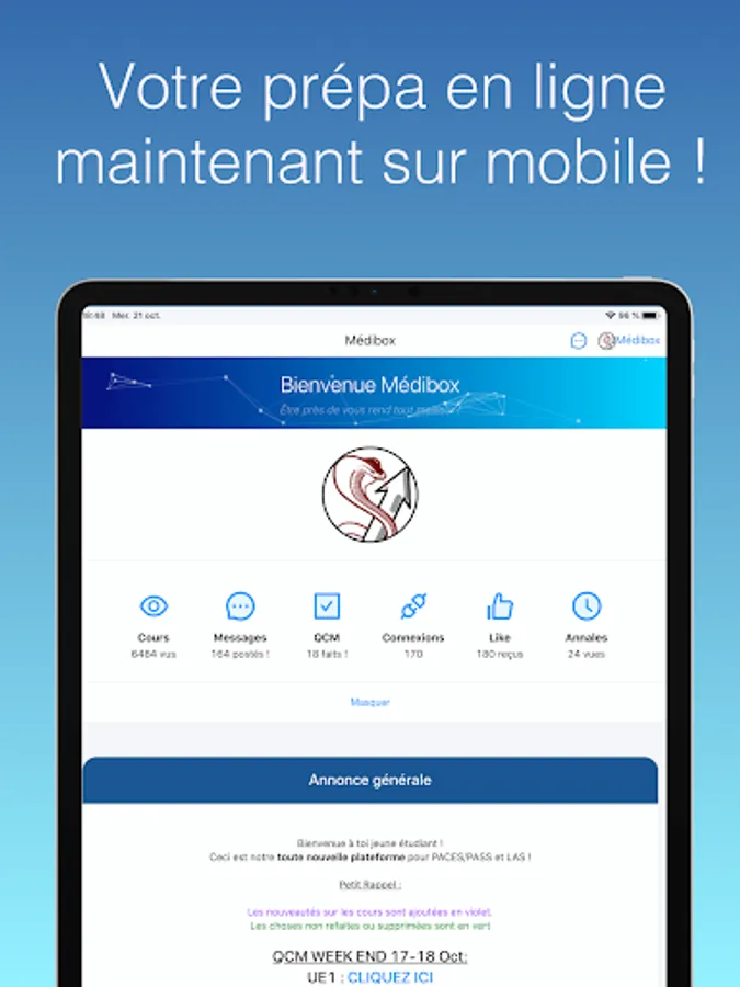 Communicate easily with your teachers/tutors - Access all your teaching resources easily, follow your schedule, generate revision schedules and train on many MCQs!
