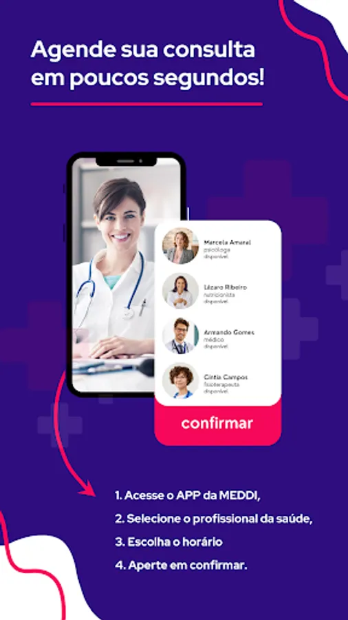 Here you will have access to the schedules of Doctors, Nutritionists, Speech-Language Pathologists and Psychologists close to you and request an appointment in a fast, practical and totally online way, without having to waste time calling offices and secretaries.