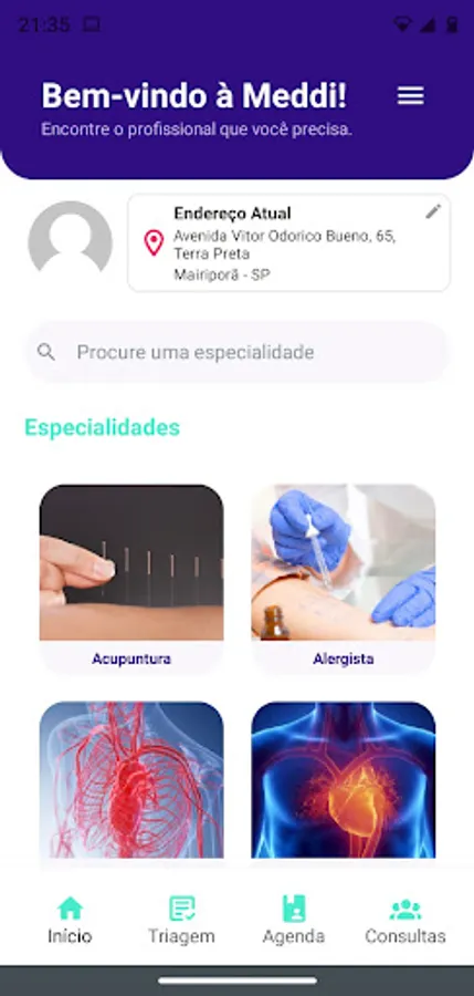 - Ease of payment: you can choose between registering your card in the Meddi application and making the payment through our platform or paying at the time of the consultation with cash, PIX, etc.