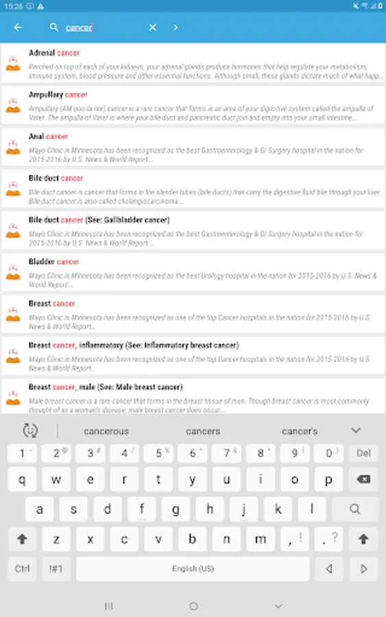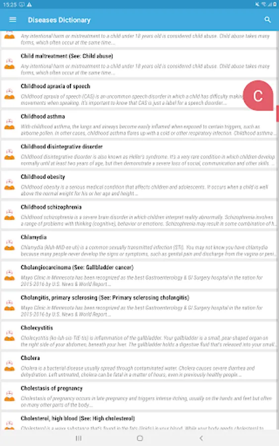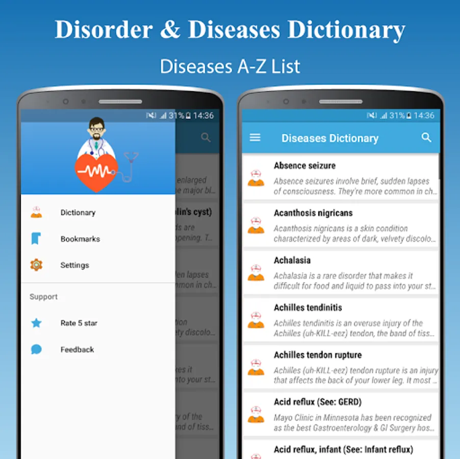 This app include list of Medical disorders & diseases that provides all information about symptoms, disorder and treatment and many medical terminology