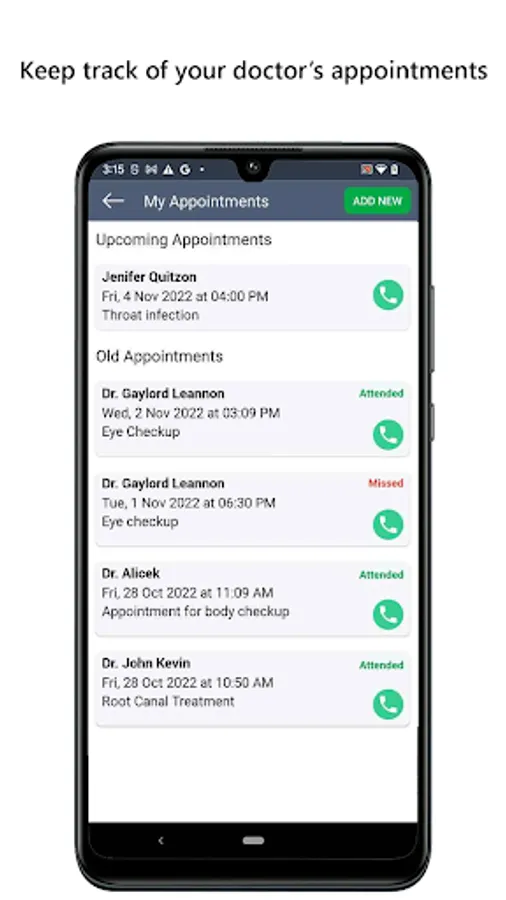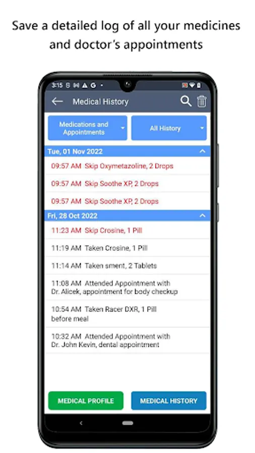 • Never again forget about any upcoming doctor appointments with our comprehensive appointment manager that keeps track of all your appointment information and alerts you of your upcoming appointments. The appointment list is sorted in chronological order. Upcoming appointment appears at the top in the list.