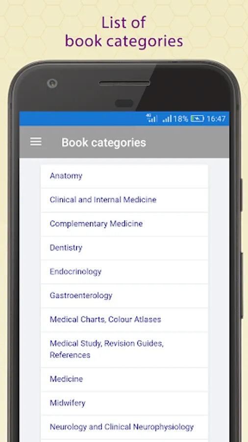 Explore the app to find: bestellers and upcoming books to pre-order, medical reference books and thesaurus covering medical terminologies and abbreviations, medical dictionaries, answers to your medical questions, general and specific medical information, medical advice services, medical flashcards, newest MCAT practice guides and books, USMLE books, basic science books, medical career guides, and medical school guides.