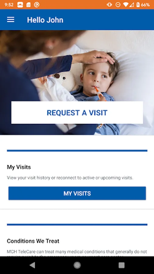 Request a consult – Open the MCH TeleCare App and request a consult, provide medical history, and pay for the consult. Your MCH TeleCare account is also available online at MCHTeleCare.com or at 1-855-618-0281.