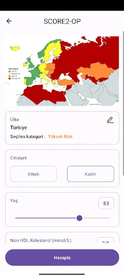 English and Turkish language support is available in the CVD Risk Calculation Application. It provides an estimate of the most appropriate cardiovascular disease risk for your patient. Patient data is not stored in the app.