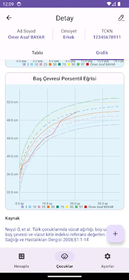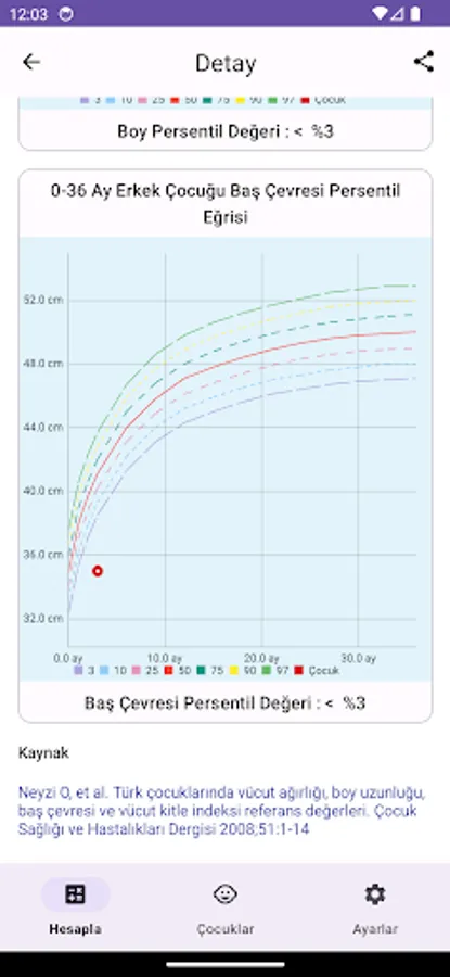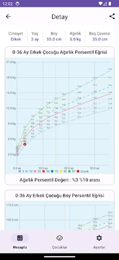 Can follow the growth curves of Turkish children. You can also enter measurements from birth to 18 years of age. All percentiles are calculated using the same high-precision LMS method that physician offices often use.