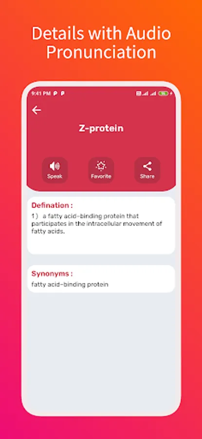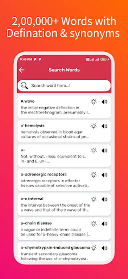 Medical Dictionary app containing over 250000 words and their pronunciation , definition and synonyms