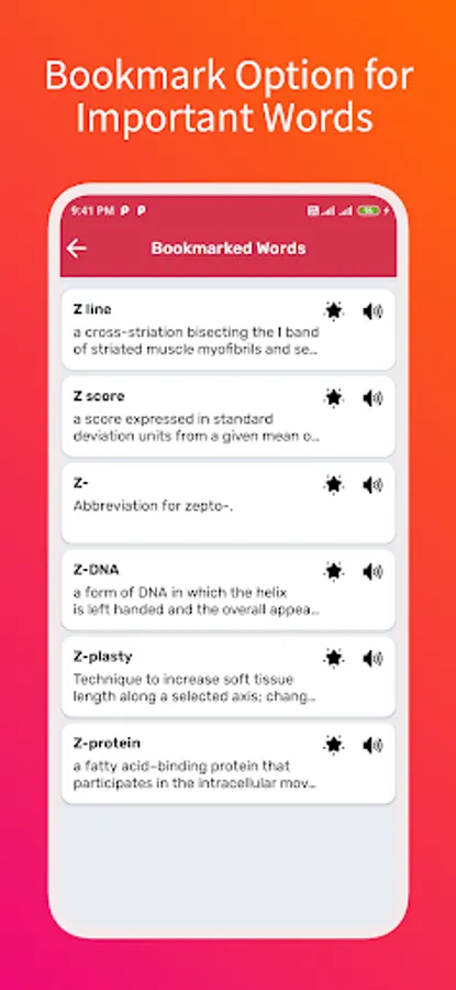 * Favorite Or Bookmark where you can add words to your favorite list by a single click