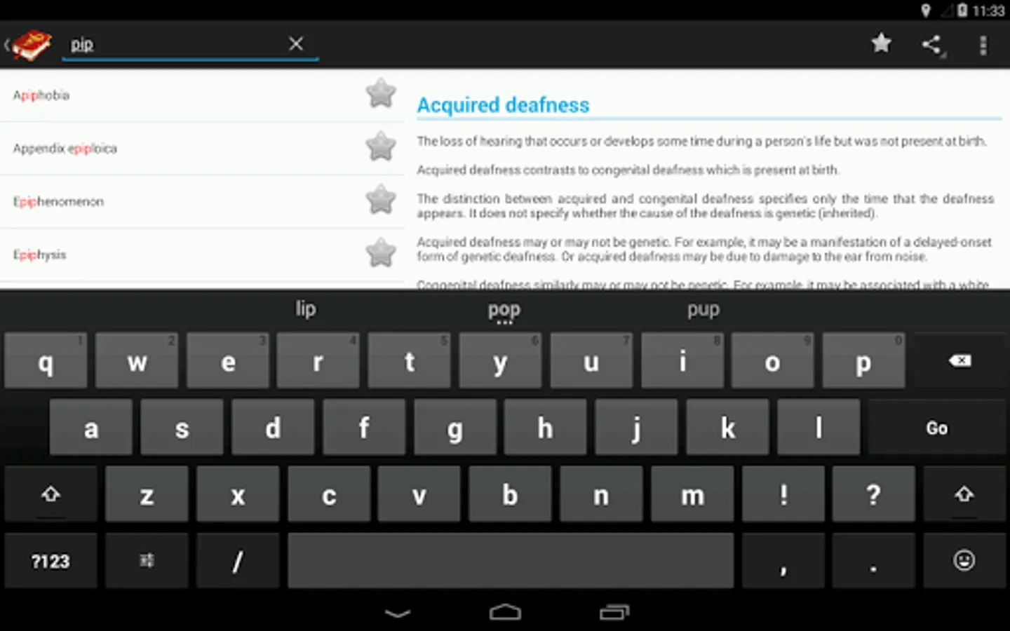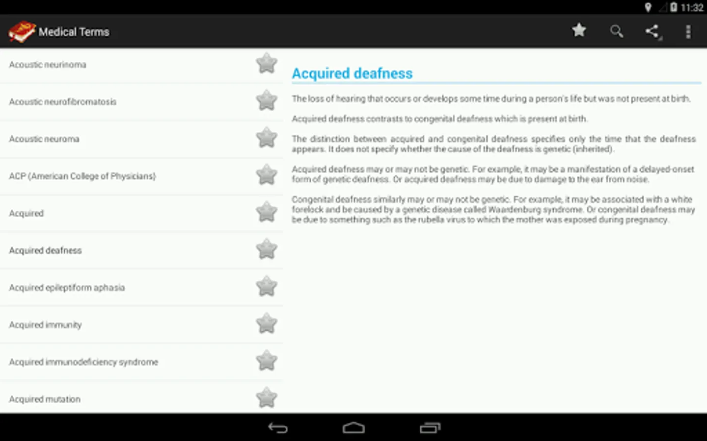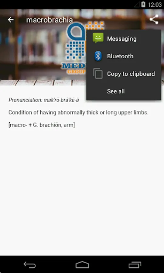 This application allows you to quickly learn and understand complex medical terminology. Medical app contains dictionary of most common used medical terms, diseases, tests and symptoms extended by external sources with tons of medical terminology.