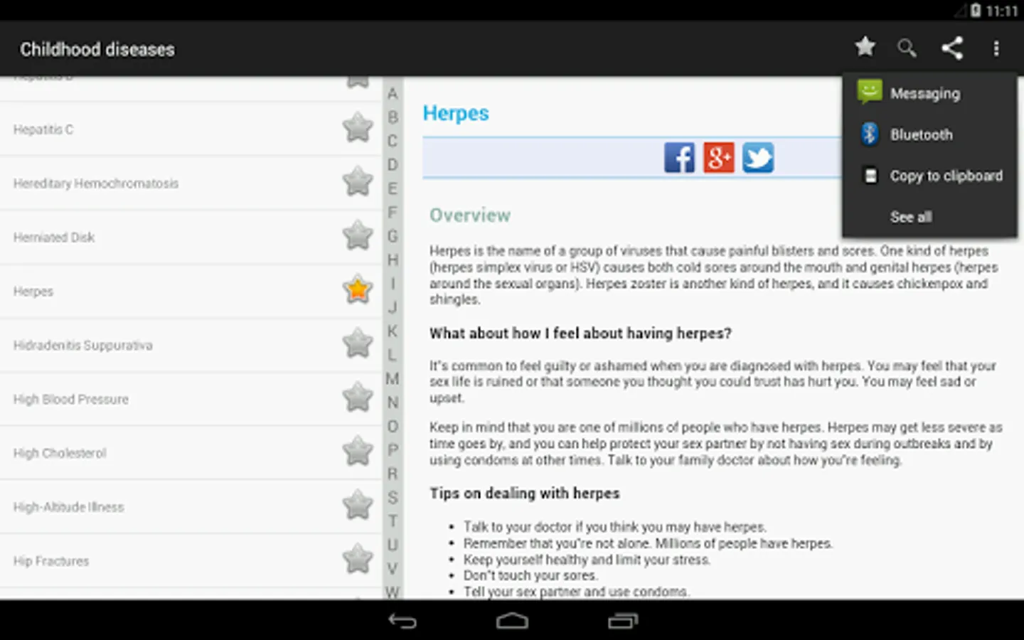 The information provided in this application is for general educational purposes only. It is not intended to be used as a substitute for medical advice. Any concerns or questions you have about your health or the health of your family should be discussed with your doctor.