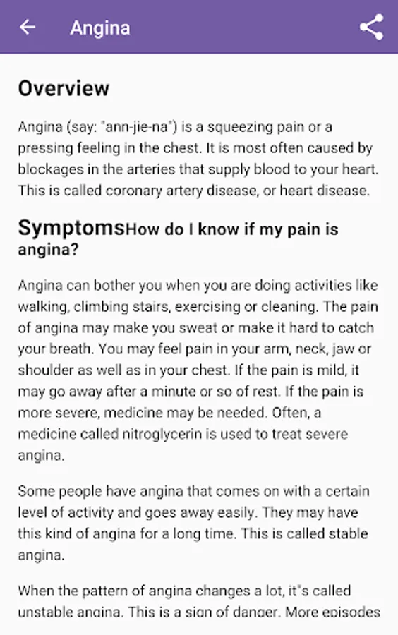 You will find reliable health information such as diseases description, it's causes, risk factors, treatment and complications, questions to ask your doctor.