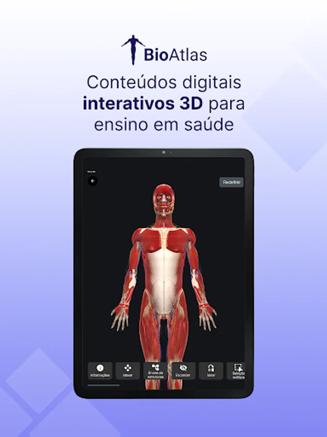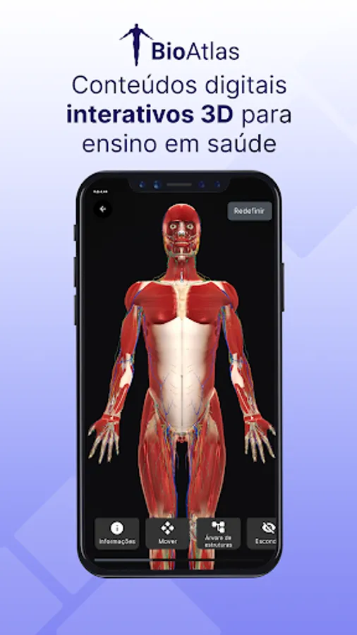 BioAtlas is a 3D interactive digital content application that facilitates teaching and learning in various areas of health in the palm of your hand. Access a virtual environment with thousands of possibilities for studying health from anywhere.
