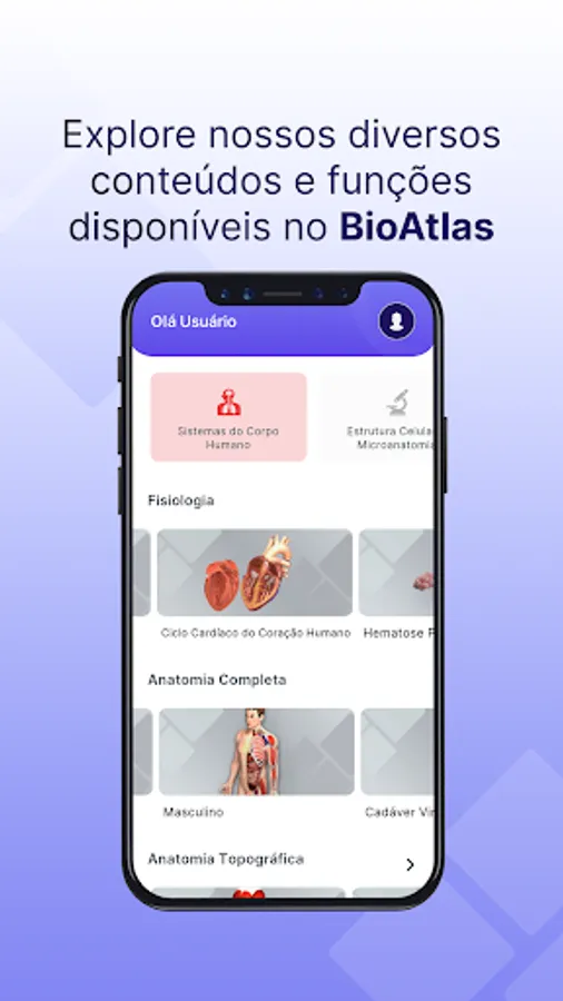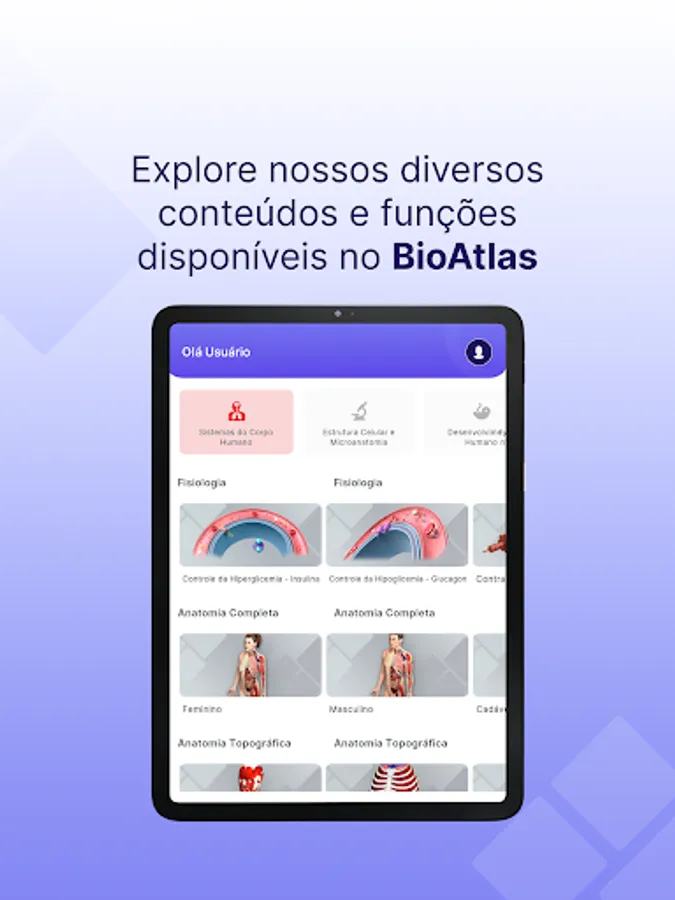 In addition to the Anatomical Atlas, BioAtlas integrates the areas of Morphological Sciences, Physiological Sciences and Human Sciences, being a unified platform for health sciences in one place.