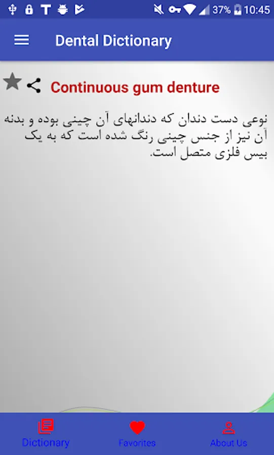 Dental Dictionary includes common dictionaries and terminology in dentistry and some general medical terms. Suitable for dentistry students.