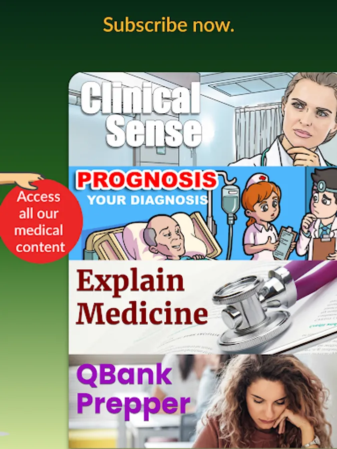 Clinical Odyssey offers simulations spanning more than 500 conditions and diseases, all which can be played in minutes. Each simulation is also accompanied by a concise yet comprehensive discussion of the diagnostic reasoning, and key learning points for you to take home.