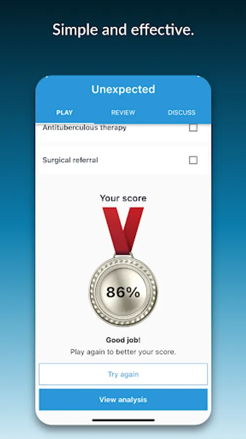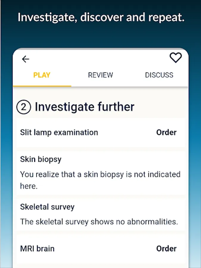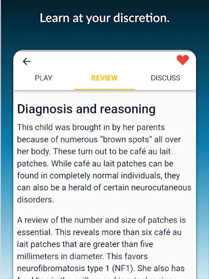 Our catalog spans a wide range of medical specialties, all which can be played in minutes. Each case is also accompanied by a concise yet comprehensive discussion of the diagnostic reasoning, as well as and key learning points for you to take home.