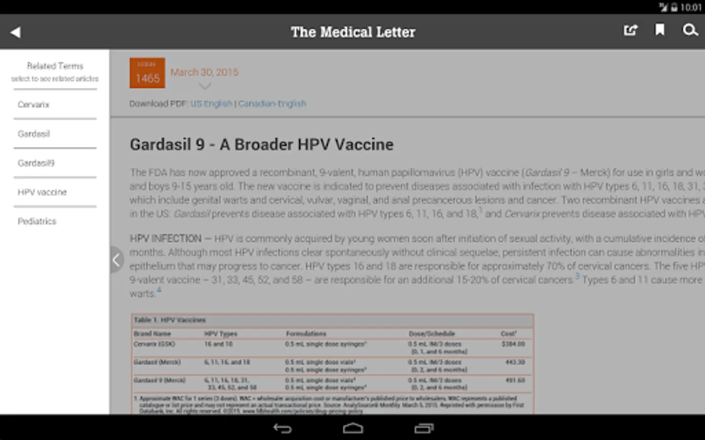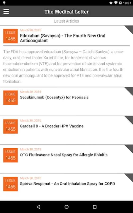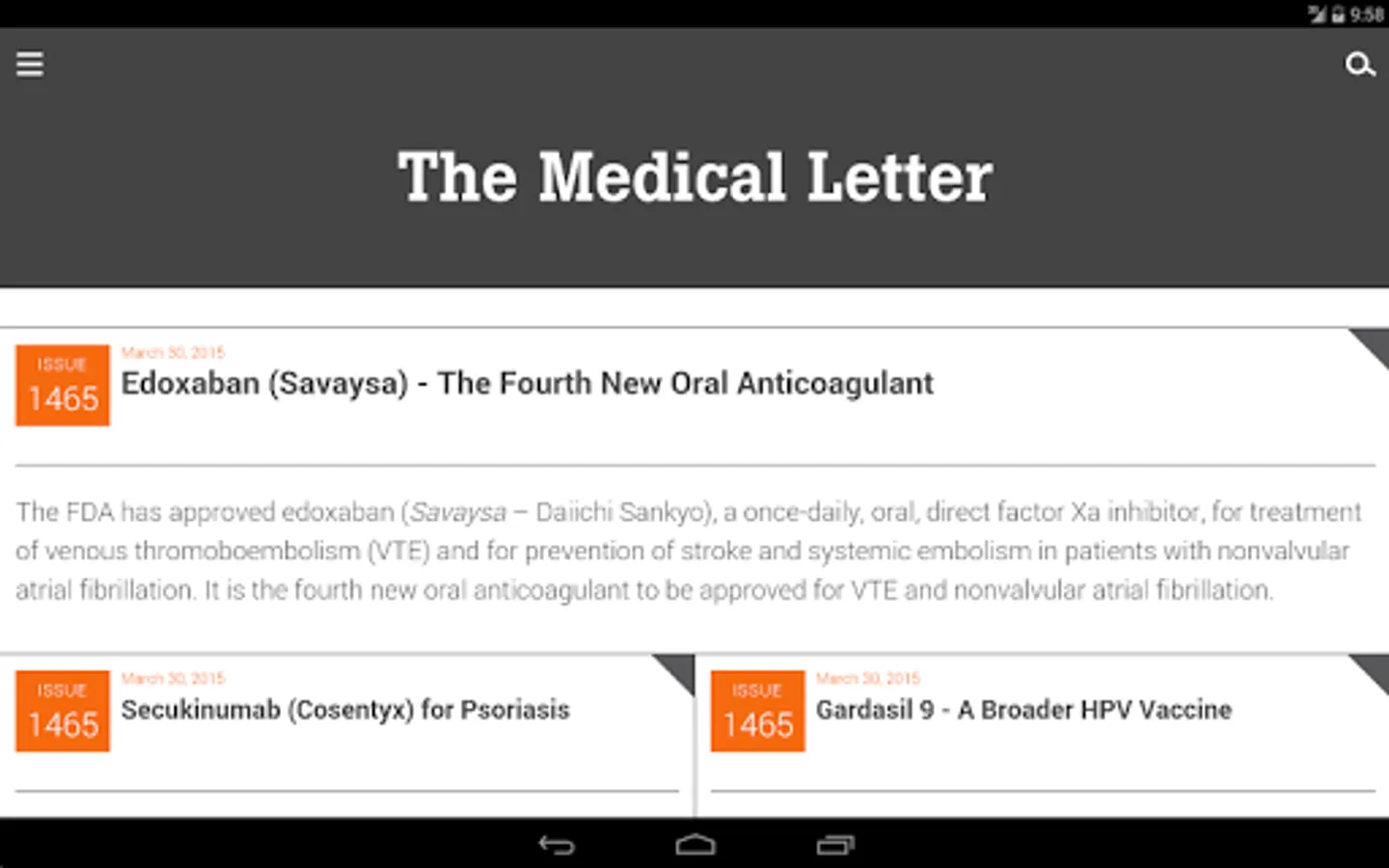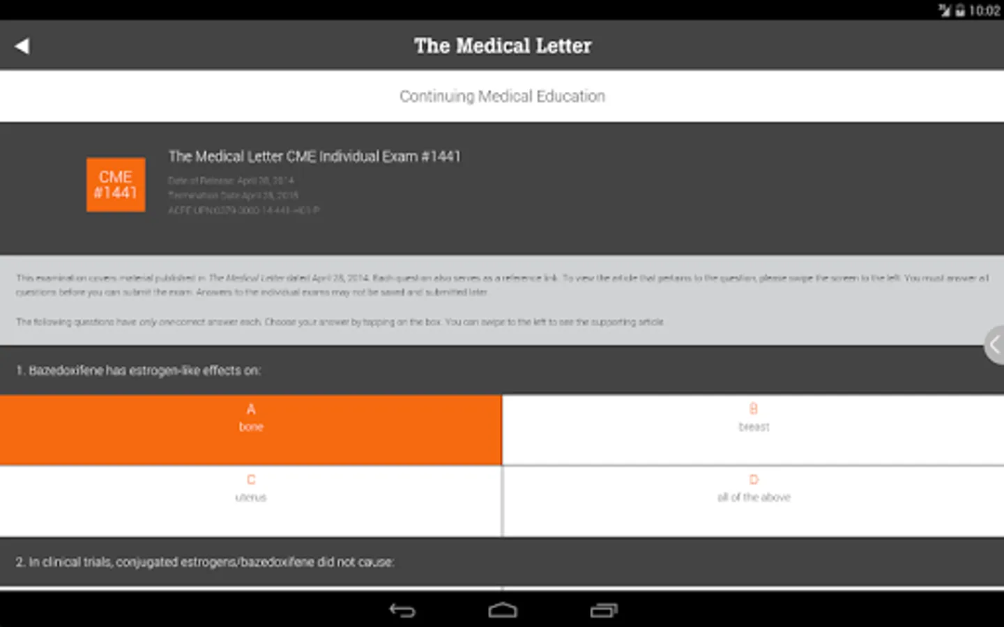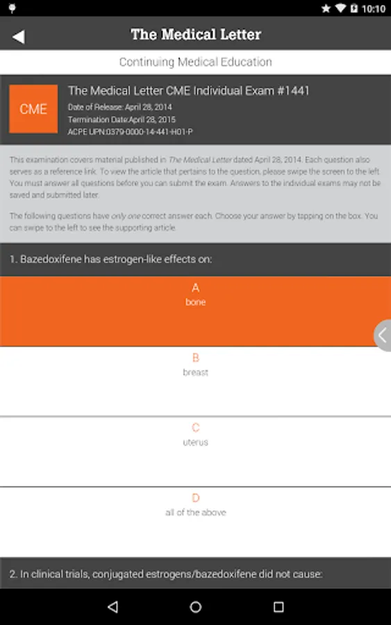 The Medical Letter on Drugs & Therapeutics: With this free app, subscribers to The Medical Letter on Drugs & Therapeutics get full access to their paid subscription. Subscribers can also take CME/CE exams on-the-go from their mobile device.