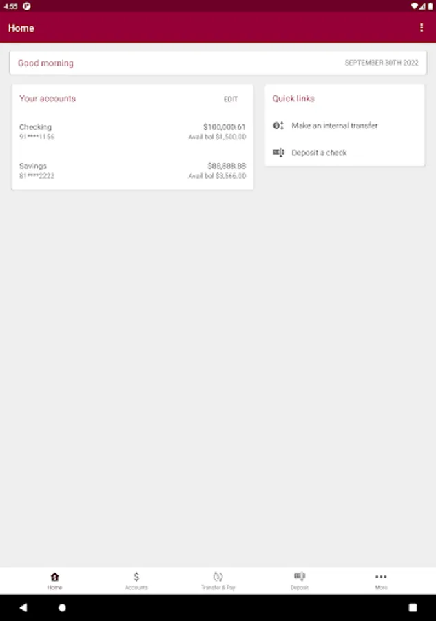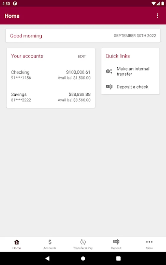 Access your accounts when and where you want right in the palm of your hand. It’s fast, secure and free access to your accounts anytime, anywhere. You have access to check your balances, pay bills and transfer money...while you are on the go!