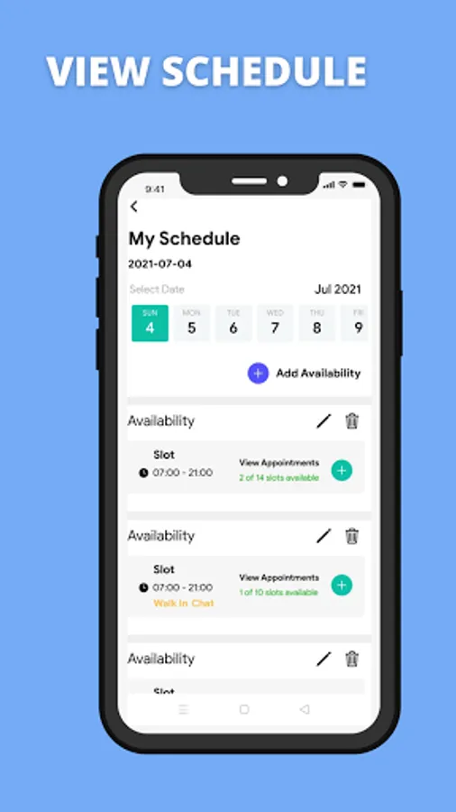 Users can manage all their appointments online and sort them by date/day and month. Users can offer walk-in or chat appointments and Accept or Reject any new appointments and mark appointments as completed. Marking an appointment as complete will change the status of the next appointment from 'Next' to 'Ongoing'. Now users can view the order of queue in the 'Appointments' tab.