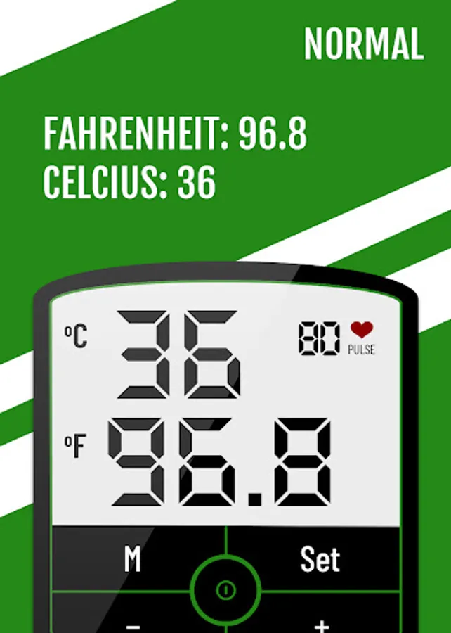 Our App DOES NOT measure Body Temperature or pulse. No app can replace professional medical measurement devices. This Body Temperature app is created to provide you a great diary for your body temperature and pulse and does not measure your body temperature and pulse. The values and graphs are only for identical purpose of body temperature readings.