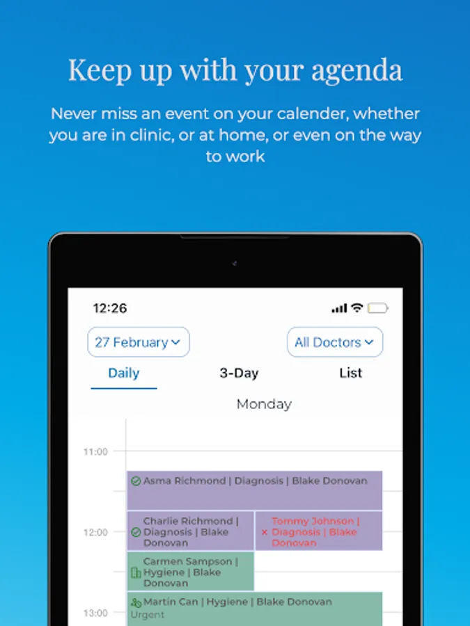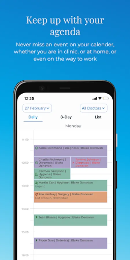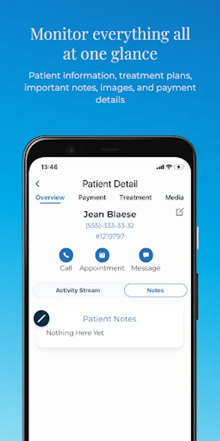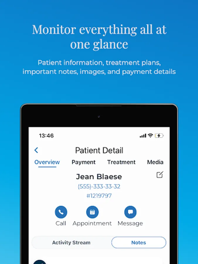Anywhere you want, you can create a new patient record with just your phone or add reminder notes, visuals, or information to any patient profile. With the Smart Clinic Management System, everything about your clinic is in your pocket.