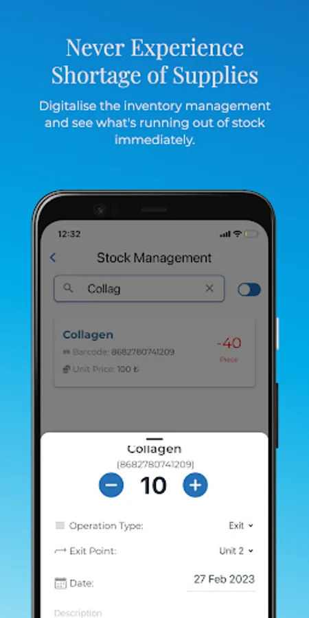• Use the inventory module to scan barcodes and track products and inventory.