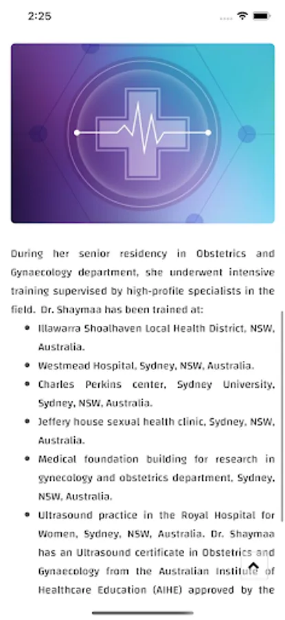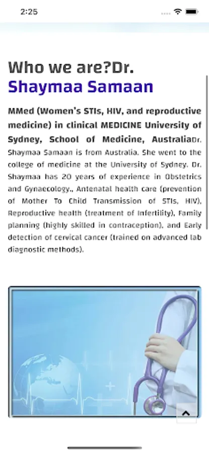 Dr. Shaymaa Samaan is from Australia. She went to the college of medicine at the University of Sydney. Dr. Shaymaa has 20 years of experience in Obstetrics and Gynaecology., Antenatal health care (prevention of Mother-Child Transmission of STIs, HIV), Reproductive health (treatment of Infertility), Family planning (highly skilled in contraception).