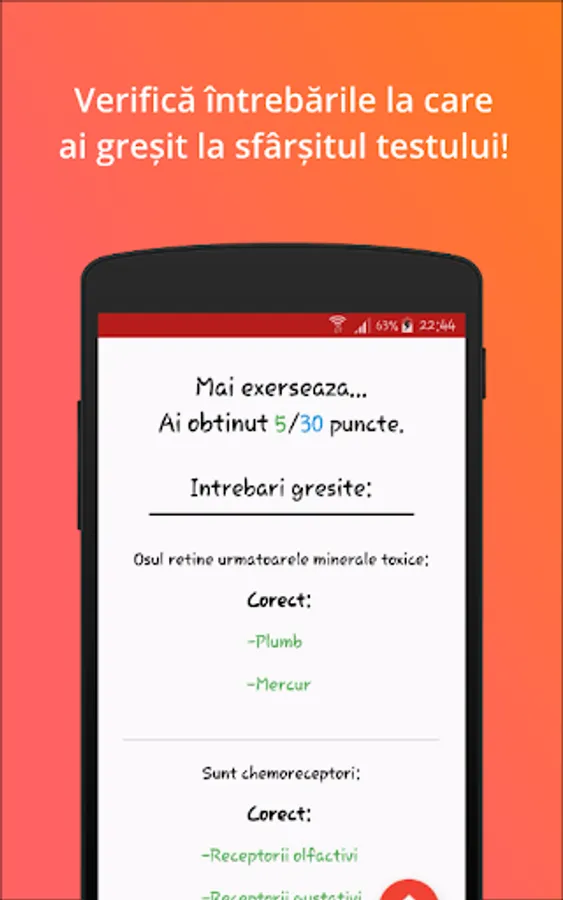 At the end of the questionnaire you will find a list of correct answers for each question that you answer incorrectly, which allows you to review your knowledge.