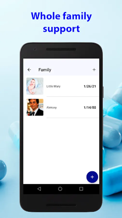 • Support for several users. You may set up reminders for several family members in this app. Each reminder shows up with the name of the user then. Set up reminders for your mom, little son or daughter just right here.
